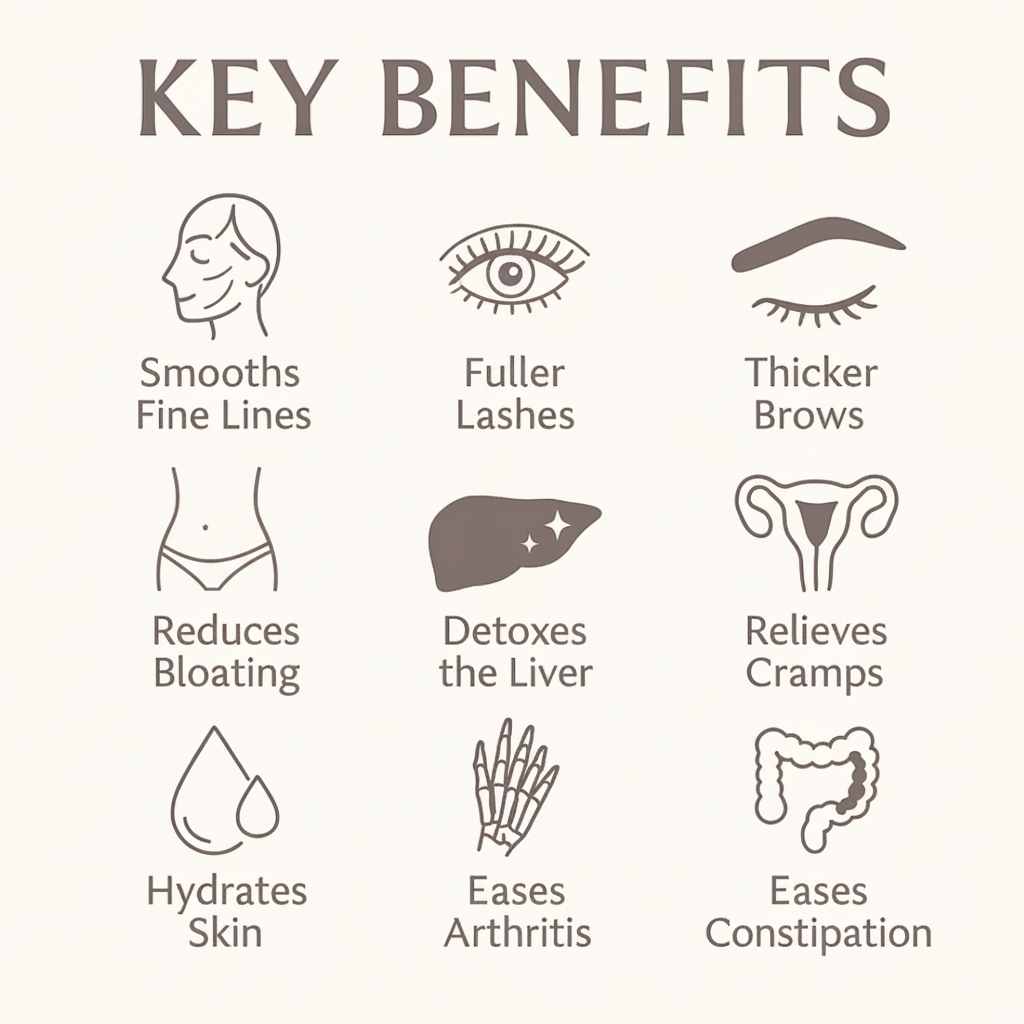 Castor oil is rich in ricinoleic acid, which helps increase circulation and lymphatic flow. This allows your body to naturally flush out waste, reduce puffiness, and support liver function without harsh cleanses.